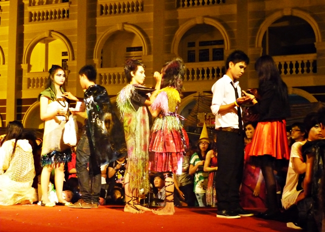 Khuôn viên Trường Đại học Võ Trường Toản trong đêm hội tràn ngập những sắc màu huyền bí, những hình ảnh kỳ quái nhưng cũng kém phần ngộ nghĩnh được tạo thành từ bàn tay sáng tạo của các bạn sinh viên.