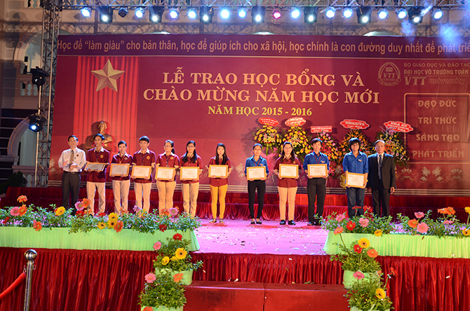 Nhân dịp chào mừng năm học mới 2015 - 2016 Trường Đại học Võ Trường Toản đã trao các suất học bổng khuyến học dành cho sinh viên đạt thành tích xuất sắc trong học tập, sinh viên vượt khó học tốt trong năm học 2014 -2015 và phần thưởng dành cho sinh viên đạt thủ khoa đầu vào năm 2015.
