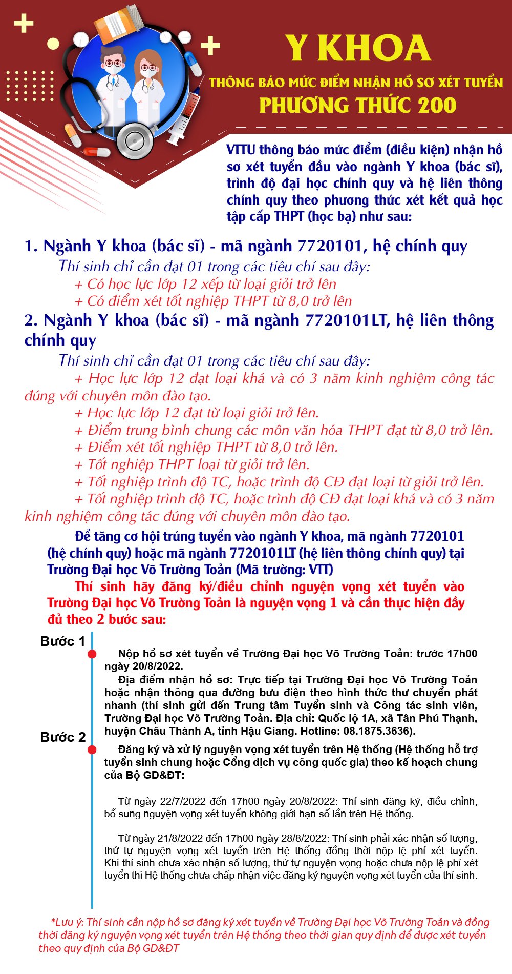 Ngành Y khoa - Thông báo mức điểm nhận hồ sơ xét tuyến phương thức 200