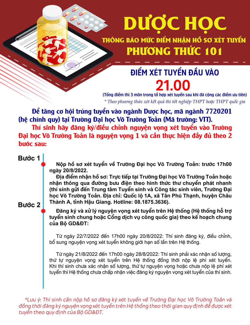 Ngành Dược học - Thông báo mức điểm nhận hồ sơ xét tuyến phương thức 101